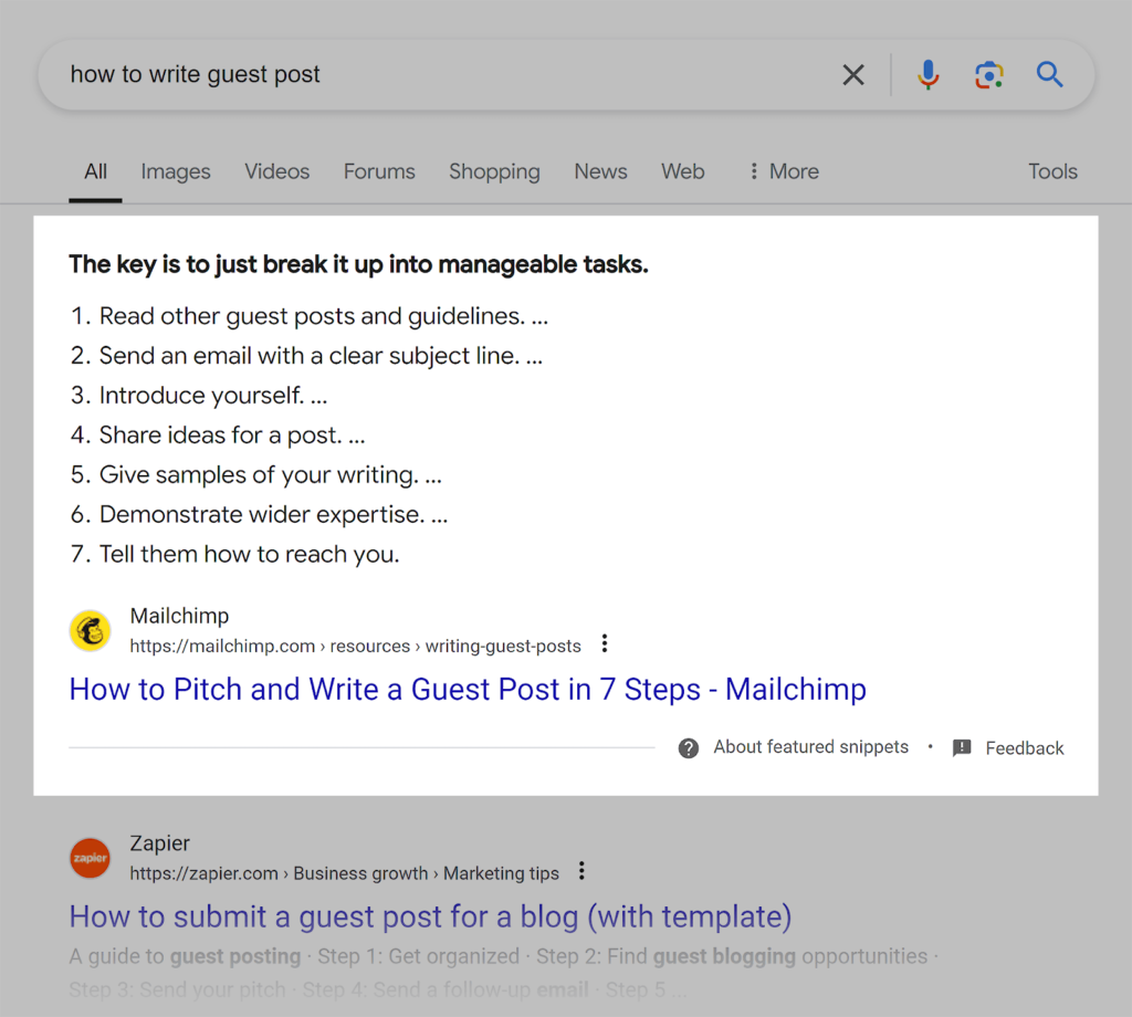 यह अविश्वसनीय रूप से मूल्यवान होता है क्योंकि यह Zero Position माना जाता है। यानी Organic Results से भी ऊपर।